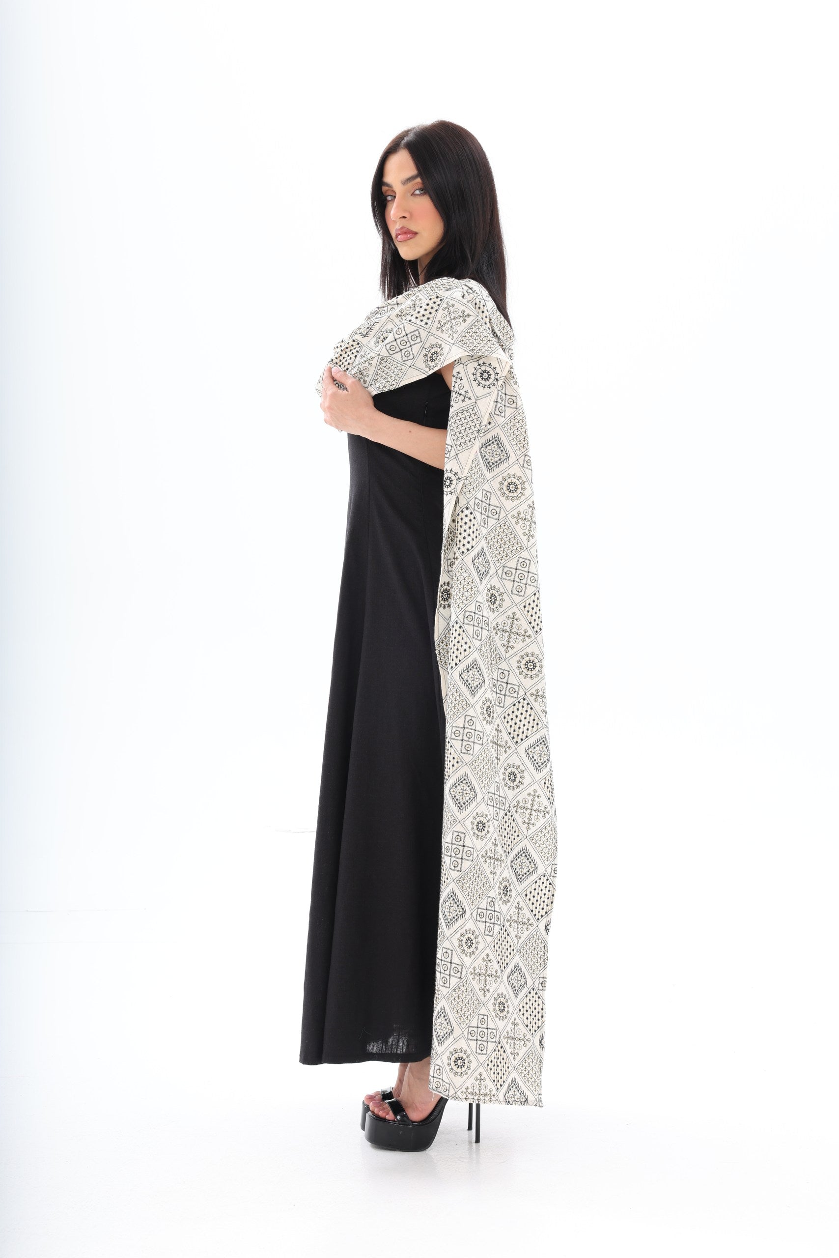 Elevate your style with our Chic Black Abaya Dress, featuring exquisite embroidery detailing at the top. Made from soft, breathable fabric, this dress offers a flattering, flowing silhouette that ensures both comfort and elegance.