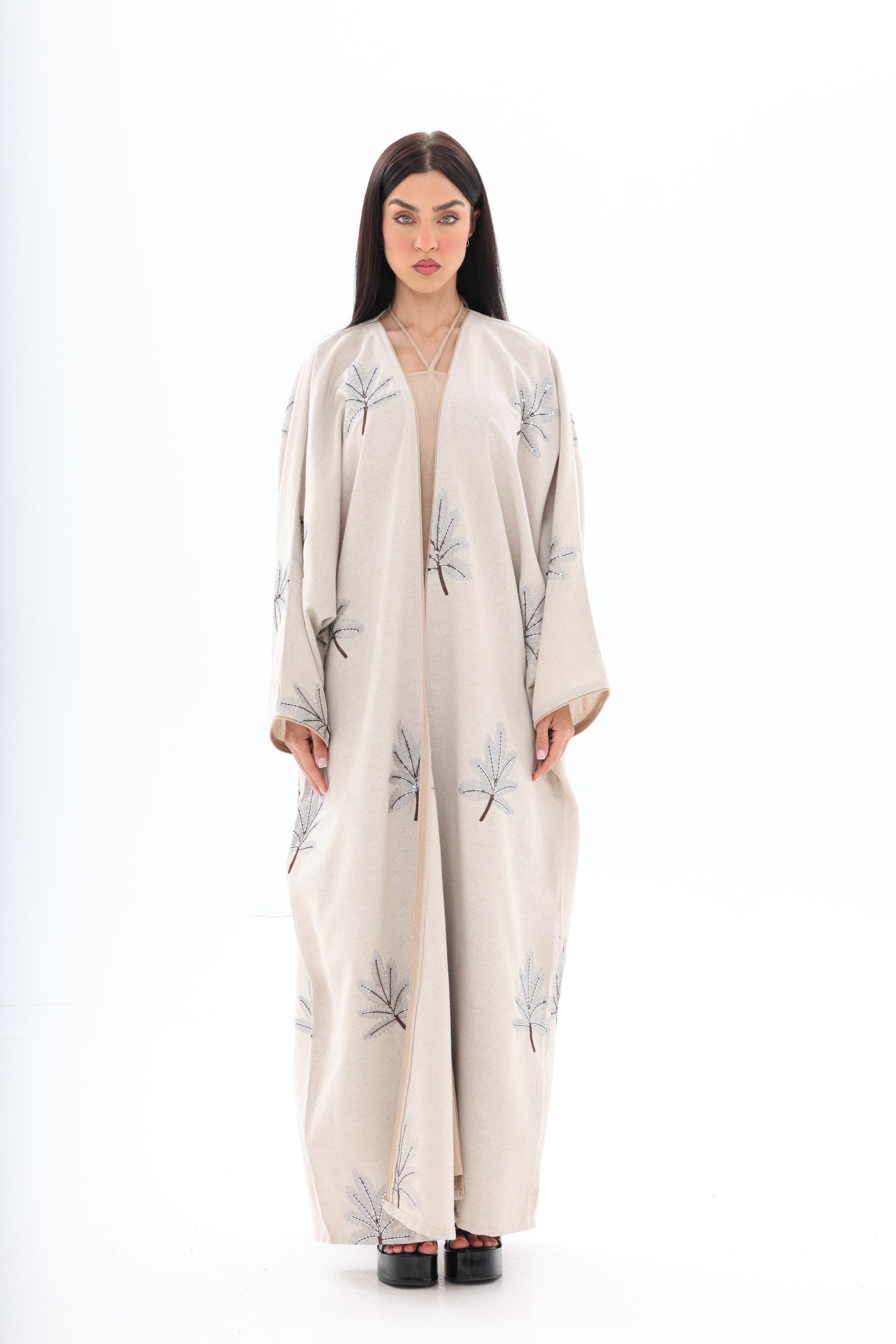Discover timeless elegance with our Sophisticated beige Abaya Dress, adorned with beautiful embroidery at the neckline. Crafted from premium, lightweight fabric, this abaya features a graceful, flowing silhouette that enhances your natural beauty.