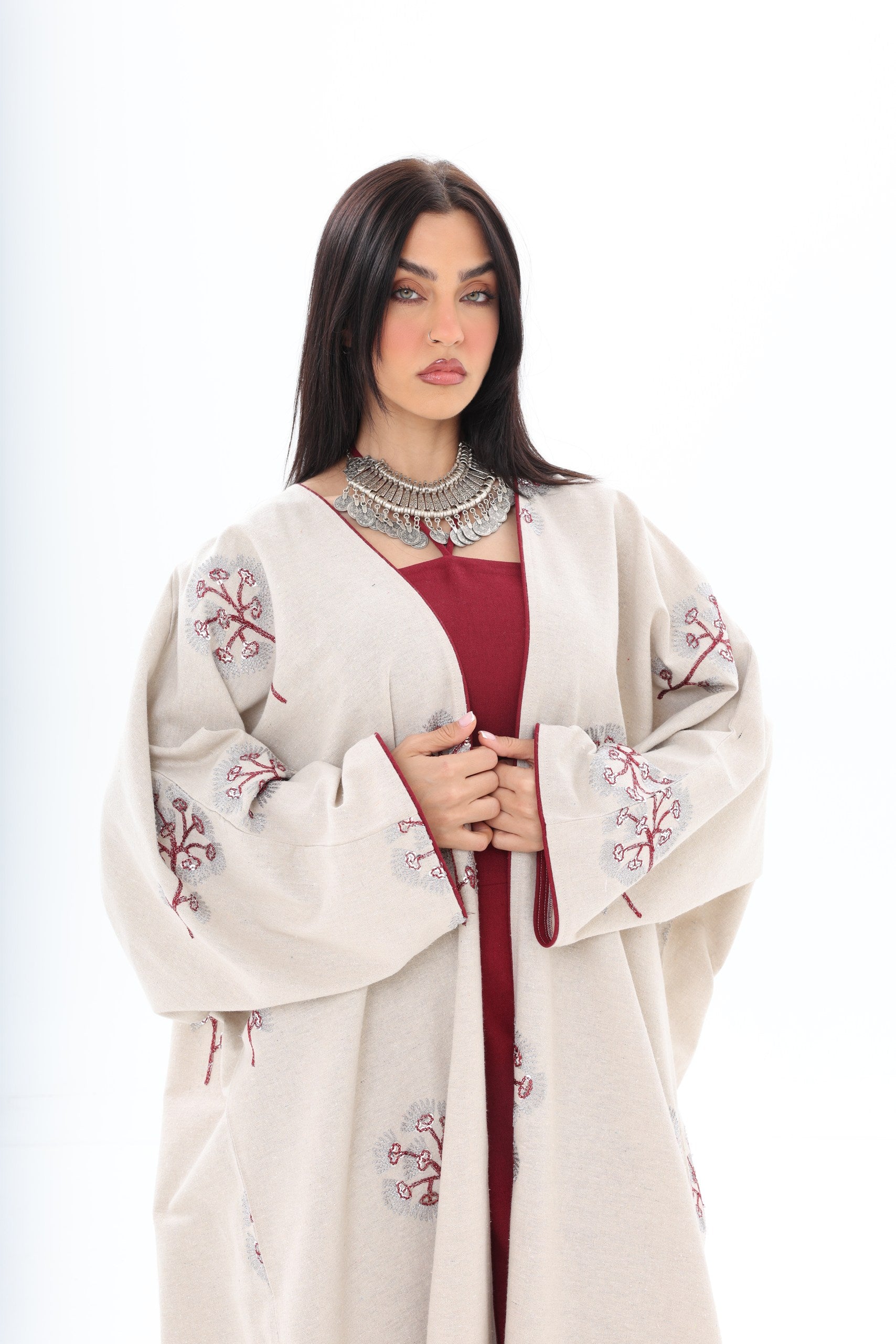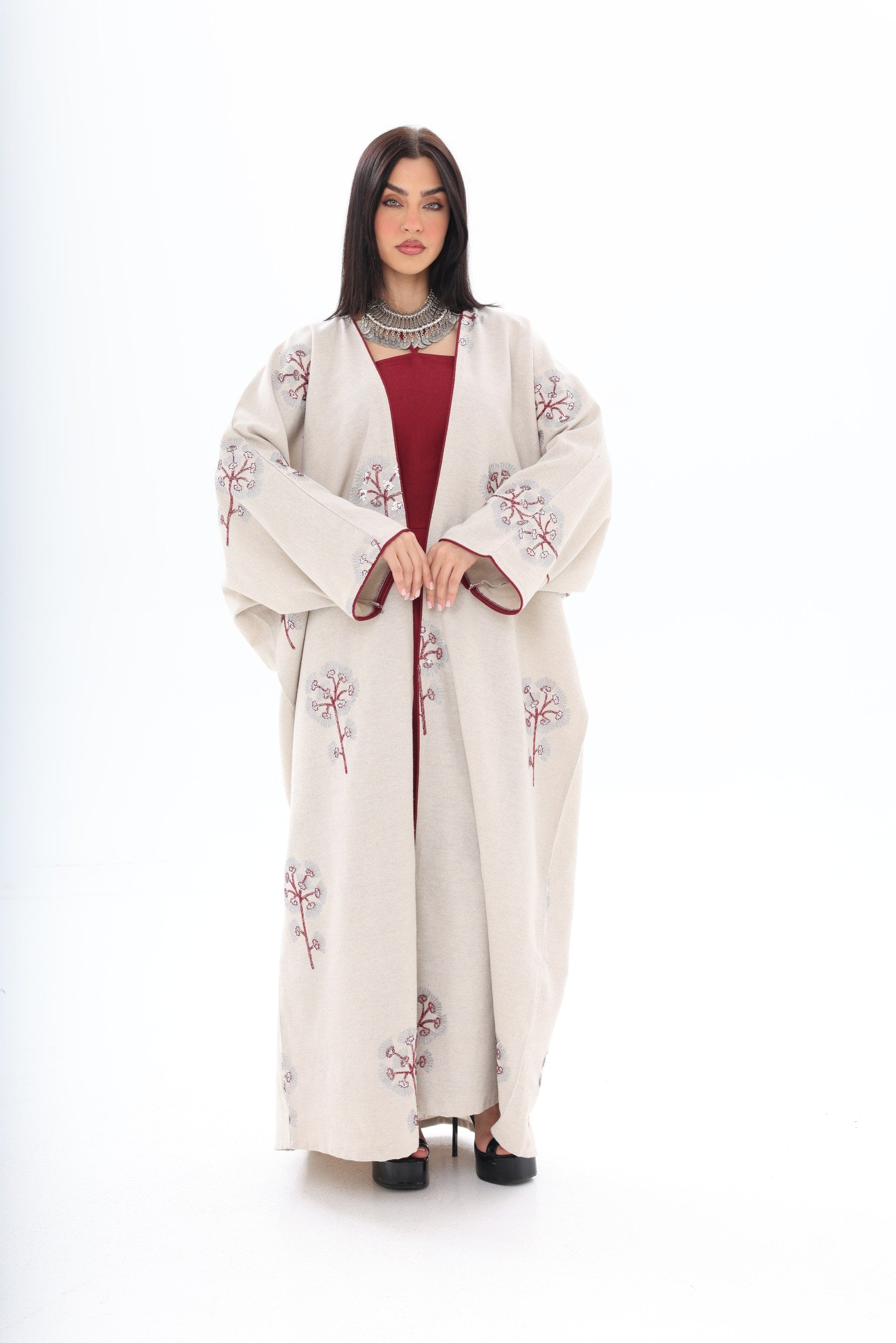Discover timeless elegance with our Sophisticated Maroon Abaya Dress, adorned with beautiful embroidery at the neckline. Crafted from premium, lightweight fabric, this abaya features a graceful, flowing silhouette that enhances your natural beauty.